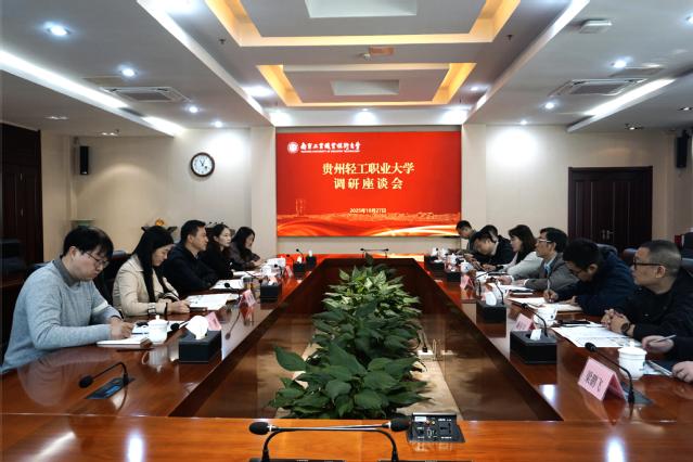 10月27日上午,贵州轻工职业大学党委副书记、校长杨天仪一行来校调研,万象城官网党委书记谢永华在行政楼辅楼一楼会议室接待来宾,相关职能部门负责人参加座谈。