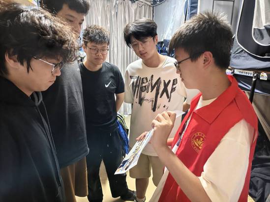 活动伊始,自治委员会在香樟1栋2楼会议室召开反诈宣传工作部署会,会长胡韦国进行了宣讲。他表示,高校学生社会经验不足、防范意识薄弱,已成为诈骗分子的重点目标,反诈宣传工作刻不容缓。宿舍作为学生在校生活的核心场所,是反诈宣传的关键阵地,我们必须将防骗知识精准传递给每一位同学。随后,他分享了周边高校近期发生的真实诈骗案例,用触目惊心的事实让成员们深刻认识到反诈工作的重要性。同时,会议明确了宿舍宣传的具体分工,要求成员们以楼栋为单位,深入宿舍开展“面对面”的宣传讲解。宣传过程中,成员们结合海报内容,用通俗易懂的语言向同学们讲解常见诈骗类型的识别方法,反复叮嘱大家“不轻信、不透露、不转账”,遇到可疑情况及时联系辅导员。另外,成员们还特别提醒同学们下载“国家反诈中心APP”,开启来电预警功能,筑牢技术防骗屏障。