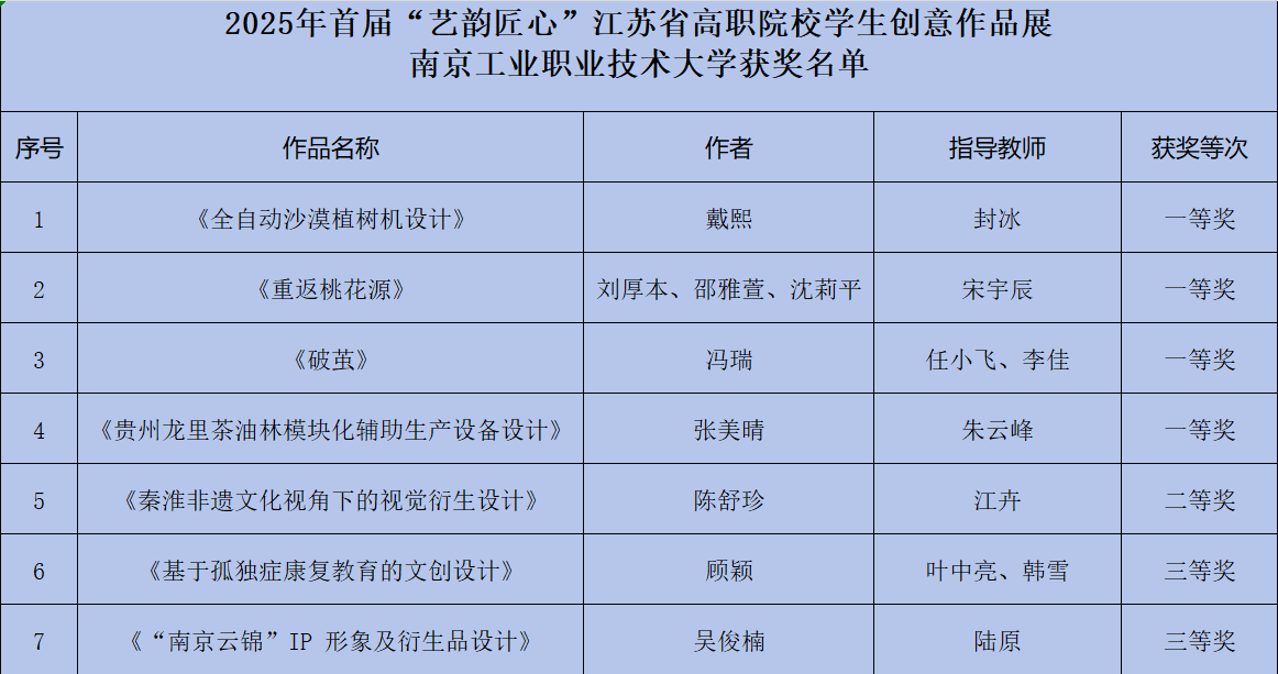 近日,由江苏省教育厅主办的首届“艺韵匠心”江苏省高职院校学生创意作品展圆满落幕。本次大赛共有全省72所高职院校共447件作品参赛,144件作品实物入围终评展示。万象城官网报送作品获一等奖4项、二等奖1项,三等奖2项,获奖数量与等次均位居全省前列。