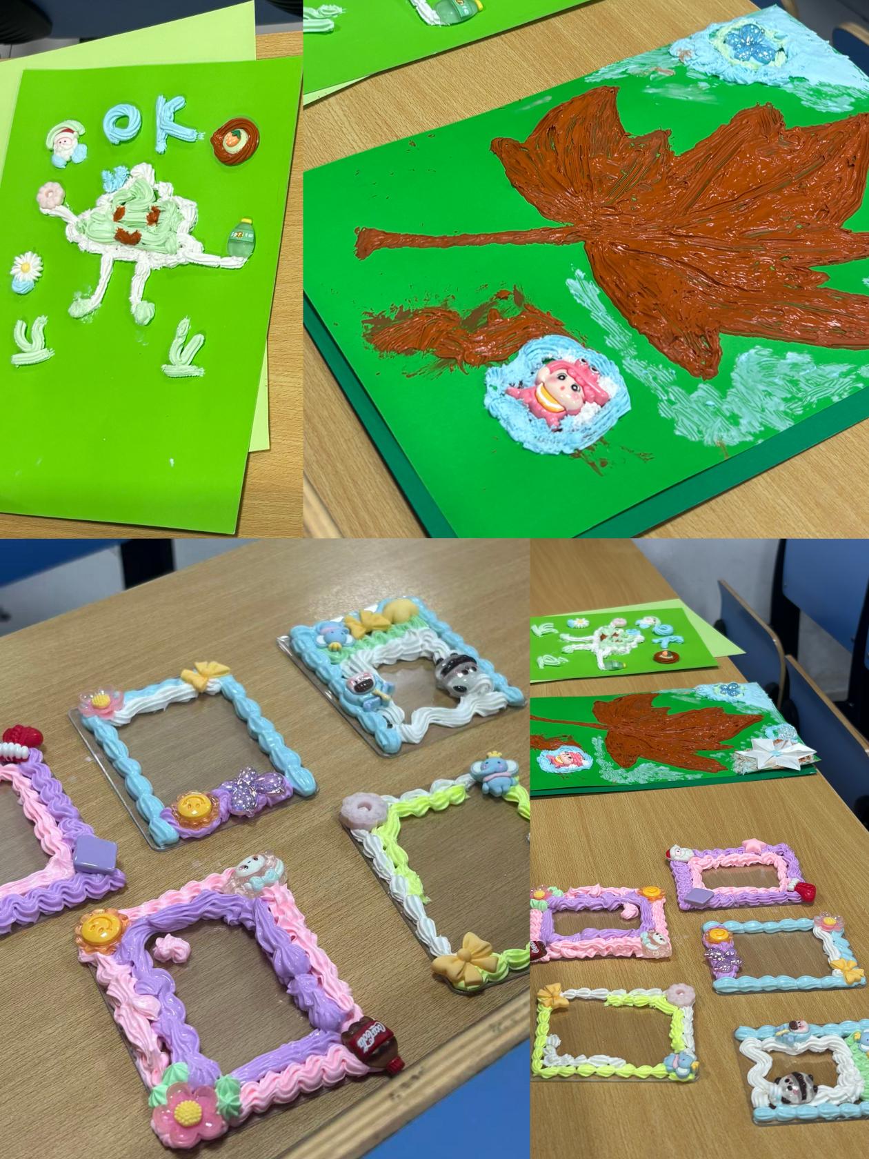 演讲结束后,手工环节将现场气氛推向另一个高潮。马卡龙色奶油胶、缤纷彩纸等材料整齐陈列,同学们自由组队,投入到“雪花折纸”与“创意笔筒”的制作中。折纸区里,大家互帮互助,用心攻克每一道折痕难题,最终一件件点缀着小亮片、蕴藏渐变巧思的雪花作品悄然绽放,在灯光的映照下宛如一场温馨的“人工降雪”。笔筒创作区同样热火朝天,同学们用奶油胶勾勒出独特花纹,粘贴上心仪配件,更不忘写下真挚的青春寄语,每一件作品都独一无二。活动尾声,同学们举着亲手制作的二十余件手工作品拍摄合影,将欢笑定格,让快乐留存。