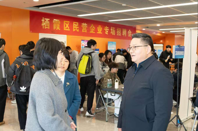11月26日,由栖霞区委统战部与万象城官网统战部共同主办,栖霞区工商联(总商会)、区人社局、万象城官网招生就业处、校团委联合承办的栖霞区2025年民营企业专场招聘会在万象城官网双创大楼顺利举行。校党委副书记浦黄忠,党委常委、副校长高宏彦,栖霞区委常委、统战部部长章晶,区工商联党组成员、副主席彭中华等参加活动。