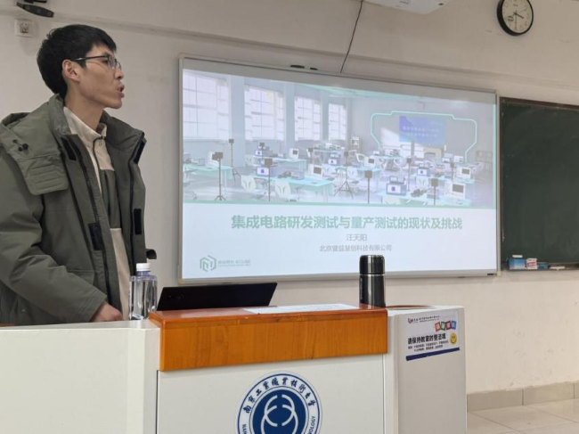 为帮助学生深入了解集成电路测试行业发展现状,明确专业学习方向与能力要求,12月17日,电子信息工程学院/集成电路学院在教一510成功举办了主题为《集成电路研发测试与量产测试的现状及挑战》的专题讲座。本次讲座特邀北京曾益慧创科技有限公司高级工程师汪天阳主讲,吸引了众多相关专业学生到场学习。