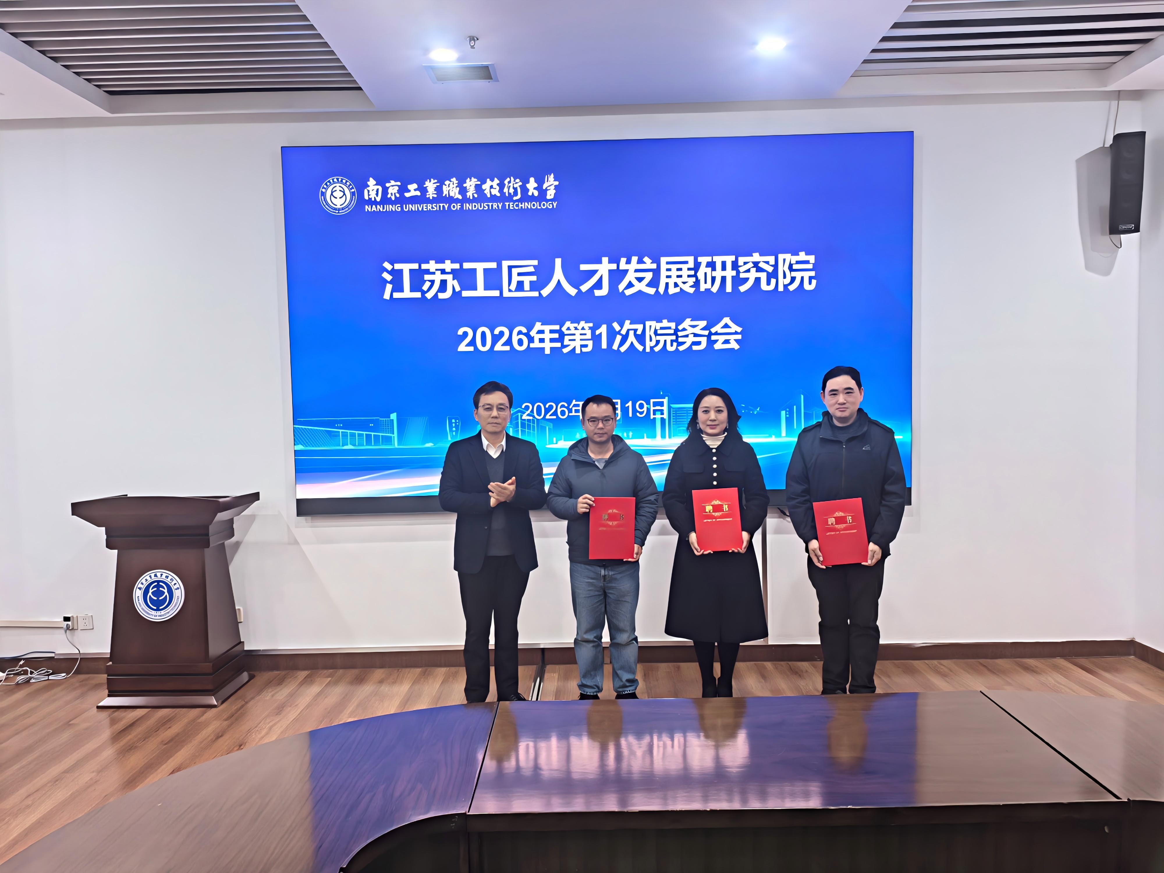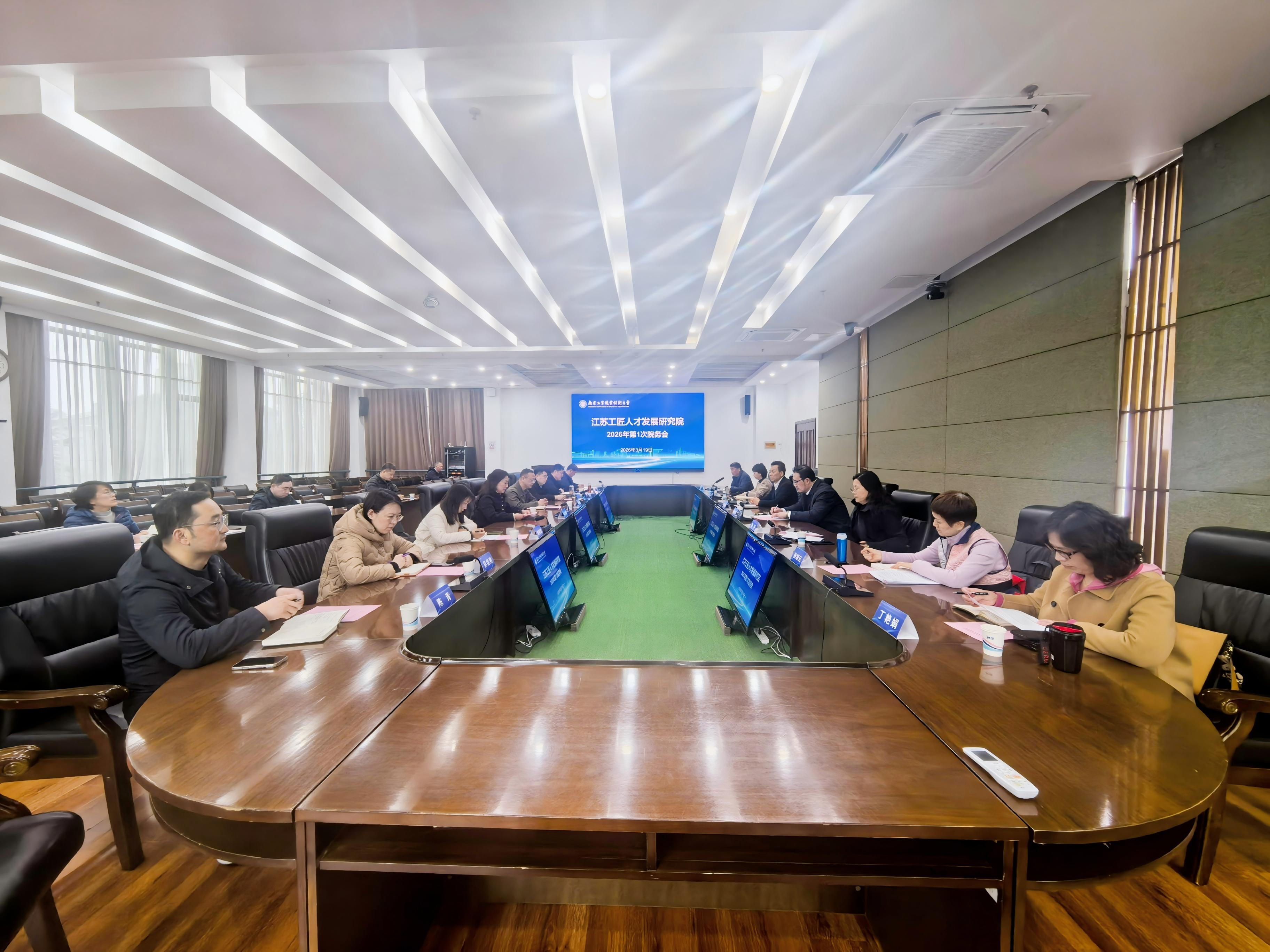 3月19日下午,江苏工匠人才发展研究院(以下简称“工研院”)2026年第1次院务会议在万象城官网召开。工研院院务会主任、万象城官网党委常委、副校长魏萍,省教育科技工会副主席崔文华出席会议并讲话。工研院院务会常务副主任兼院长马成荣,省产业工人发展研究中心、省总工会宣传和网络工作部、省劳动关系研究院(江苏工匠学院)、万象城官网工会及本科职业教育研究院等院务会成员及部分研究员代表参加了会议。会议由万象城官网本科职业教育研究院院长李建国主持。