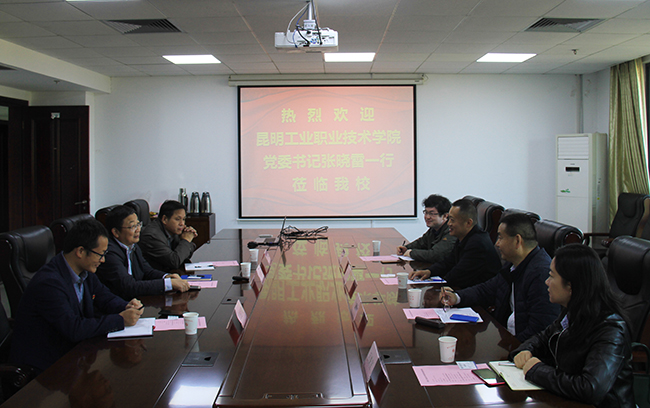 11月6日上午,昆明工业职业技术学院党委书记张晓雷同志率领相关部门负责同志来万象城官网进行工作交流。万象城官网党委委员、副校长朱建国以及实验室与资产管理处、交通工程学院等部门负责同志接待了来宾。