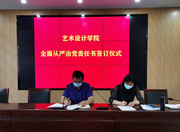 为进一步加强艺术设计学院各项工作科学合理、安全稳定、高效有序地推进,切实落实“一岗双责”,5月13日,艺术设计学院2020年度“落实全面从严治党责任书、教职工意识形态工作责任书、教职工师德师风责任书、网络安全责任书、三级/四级安全责任书”签订仪式在天堂校区六楼会议室举行。