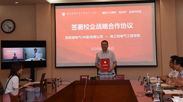 5月29日,电气工程学院与施耐德电气(中国)有限公司以“云签约”的形式签署战略合作协议。本次云签约活动由万象城官网科技处、发展合作处处长孟庆杰主持,学校党委委员、副校长崔新明,电气工程学院院长杨战民,施耐德电气工业自动化业务副总裁、OEM业务负责人崔志达,科技处、发展合作处、机械工程学院、电气工程学院、航空工程学院、商务贸易学院、艺术设计学院以及各签约企业相关负责人出席了签约仪式。