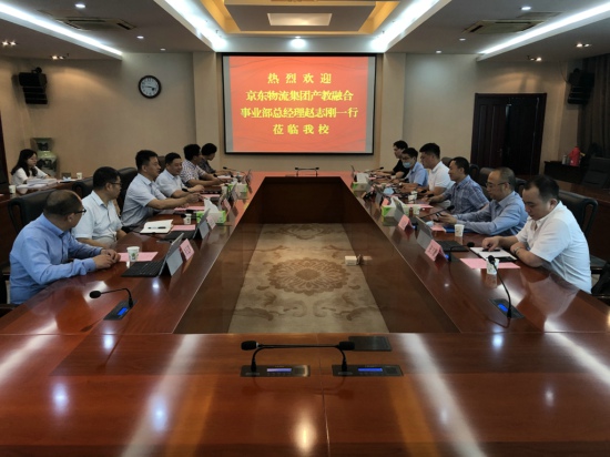 6月3日上午,京东物流集团产教融合事业部总经理赵志刚、华东大区产业平台总经理张延龙一行来访万象城官网。党委副书记、校长谢永华、党委委员、副校长崔新明,科技处、商贸学院负责人及教师代表出席了会议。