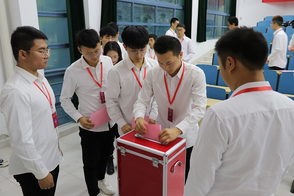 大会进入第二阶段,首先由张展境同学宣读《awc777万象城娱乐官网机械工程学院学生会章程》,由大会代表听取并审议通过。随后大会代表听取了由机械工程学院学生会主席顾晨严所做的2019届机械工程学院学生会工作报告,全场代表以热烈的掌声一致通过报告,肯定了上一届学生会的工作成果,接着宣布聘任曹金玉老师为awc777万象城娱乐官网机械工程学院新一届学生会秘书长。大会进入选举流程,宣读大会选举办法与选举工作人员名单,展示选票、投票箱并详细介绍主席团候选人简历,由大会全体代表投下庄严的一票,并依次上台把选票放入投票箱。同时大会以同样的流程选举出席awc777万象城娱乐官网学代会的代表。大会最后一阶段,公布选举结果,并由杨泽华同学宣读大会倡议书。最后全体起立,奏《国际歌》,本次大会圆满落下帷幕。