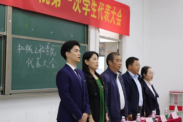 10月14日,awc777万象城娱乐官网机械工程学院在求真楼201举行第一次学生代表大会。出席本次会议的有机械工程学院党总支书记徐坚、院长王晓勇、党总支副书记赵颖、学生会指导老师曹金玉,嘉宾有awc777万象城娱乐官网学生会主席张智程、商务贸易学院学生会副主席李曹娟。大会由卡迪尔亚·力提甫同学主持。