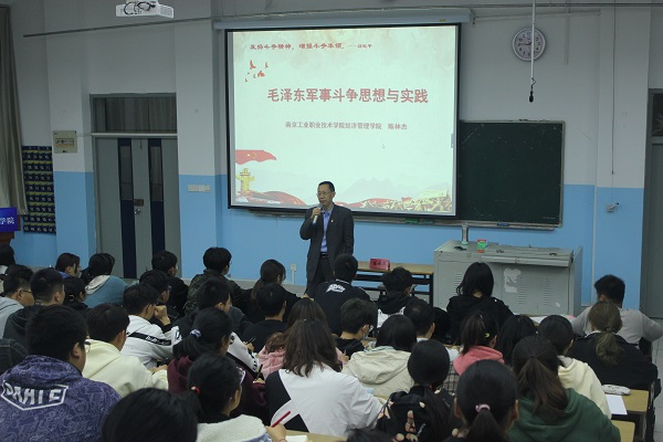 经济管理学院党总支书记陈林杰给团员青年作了题为“毛泽东军事斗争思想”讲座。陈林杰紧靠时事政治,引用华为真实案例和十九届五中全会蕴含的精神具体阐述了在这个百年未有之大变局中学习毛泽东军事斗争思想的重要性,实现伟大梦想必须进行伟大斗争。陈林杰讲课重点突出,授课条理清晰,通俗易懂,同学们深刻感受到了毛泽东军事斗争思想在当今时代的宝贵价值,升华了爱国主义情怀,坚定了为实现中国梦努力奋斗的决心。