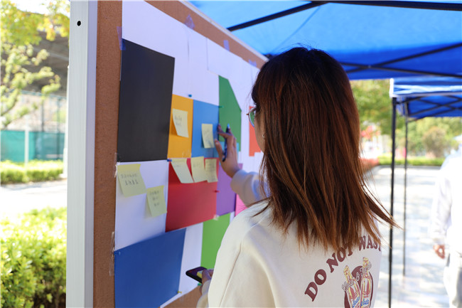 活动现场,院团总支心理部精心布置了“幸福心愿墙”和“烦恼垃圾箱”,鼓励来往教学楼的同学写下自己的烦恼,扔进烦恼垃圾箱,排除心理困扰,减轻心理压力。“心愿墙”前,同学们纷纷写下自己近期的目标和对未来的期许,小小的心愿墙上承载了同学满满的希望。一张张充满温情的便利贴汇聚在一起,成为广场上一道特殊的风景线,吸引了过往的师生们驻足观看,也深深打动了每一人的心。