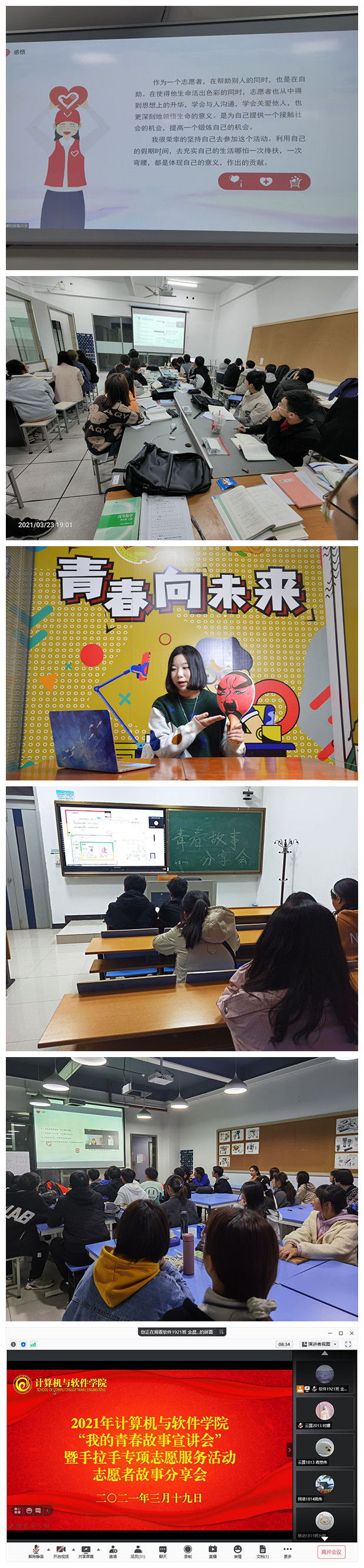 万象城官网校级学生组织以云上线下相结合的形式在校内外开展了青年抗疫榜样故事云分享荟,雷锋精神伴我行 战疫青春最美丽——2021春季学期学生返校志愿行特别主题团日活动,“一路阳光、关爱成长”大学生心理关爱专项志愿服务,爱心雷锋月 情暖夕阳红——关爱孤寡老人志愿行动等特色活动,也由此拉开了万象城官网“学雷锋活动月”暨践行社会主义核心价值观宣传月活动的帷幕。