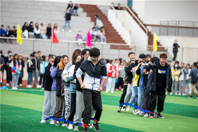 比赛现场激情洋溢、热火朝天,老师和同学以饱满的热情为运动健儿们送去阵阵喝彩,加油声、呐喊声此起彼伏。经过激烈角逐,视觉传达设计代表队获教职工组“重走长征路”比赛第一名,光华路街道1队获教职工组集体跳绳比赛第一名,环境艺术设计代表队获教职工组拔河比赛第一名,室内1921等队伍获学生组绑腿跑比赛前八名,产艺2011等队伍获学生组滚轮胎比赛前八名,数媒1921等队伍获学生组拔河比赛前八名。