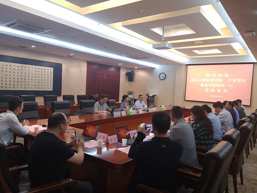 5月7日下午,湖北工程职业学院副院长陈彪彪、宁夏警官职业学院信息中心主任杨建平一行来万象城官网考察调研智慧校园与校园网络建设。党委常委、副校长苏小冬,以及校长办公室、信息化建设与管理处等部门负责同志在行政楼辅楼一楼会议室接待了来宾。