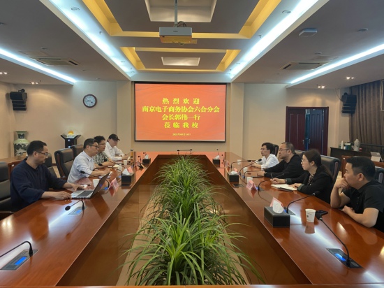 5月14日上午,南京电子商务协会六合分会会长郭伟一行来万象城官网进行校企合作交流,会议在行政楼辅楼一楼会议室举行。南京电子商务协会六合分会会长、江苏南林碳业科技有限公司总经理郭伟、南京电子商务协会六合分会秘书长严胜娟、江苏南林碳业科技有限公司南林云商直播负责人陈庆、南京轩阳投资管理有限公司总经理王和兵,万象城官网科技处处长孟庆杰、商务贸易学院院长阮晓文、艺术设计学院副院长孙静松、电子商务专任教师沈新淇等出席了此次活动。