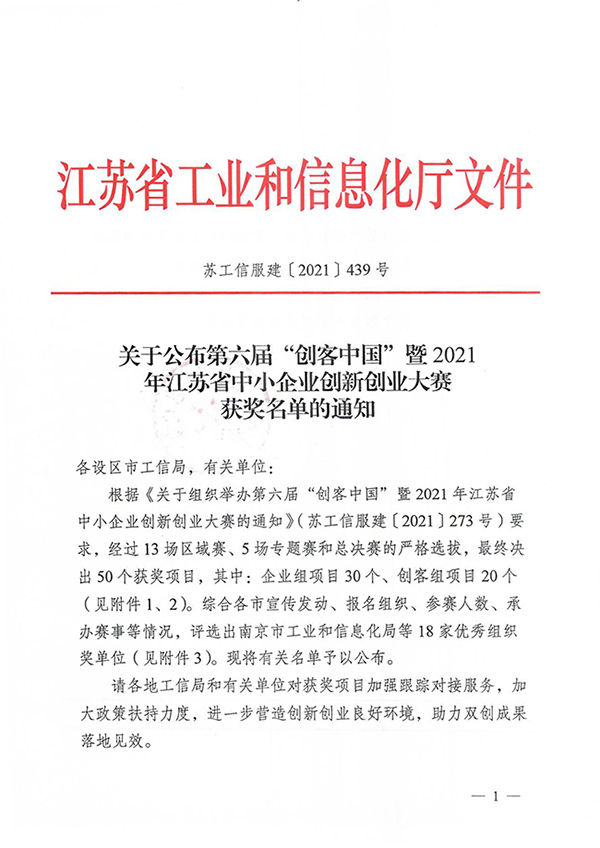 近日,第六届“创客中国”暨2021年江苏省中小企业创新创业大赛顺利落下帷幕,江苏省工业和信息化厅综合各市宣传发动、报名组织、参赛人数、承办赛事等情况,评选了大赛优秀组织奖,万象城官网大学科技园运营公司——南京南工科技园管理有限公司名列其中。