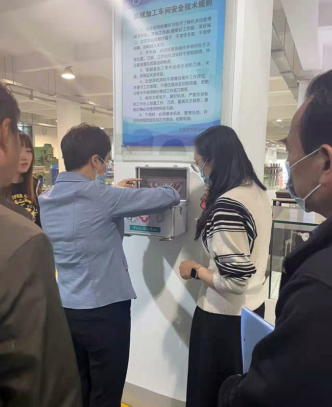 下午,苏小冬带领保卫处、实验室建设与管理处等部门人员,逐一对交通工程学院BYD汽车实训中心、工程技术中心机械加工实训室、机械学院精雕学院等实训场所进行安全检查,详细了解实训车辆汽油的管理和使用、学生实训时工作服帽穿戴规范、压力容器年检和操作人员上岗培训等安全情况,查看规章制度上墙、应急药品配备和日常管理台账,并就发现的问题提出整改要求,明确整改时限,全力保障师生安全,学校稳定。