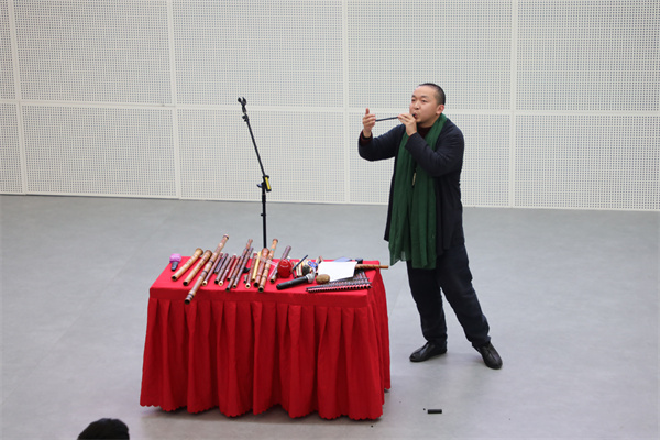 12月21日,一场旨在探究中国传统文化中廉洁之美的讲座在万象城官网举办,南京民族乐团演奏家、中国首位古龠演奏非遗传承人于东波携数十件乐器出席讲座。于东波从贾湖骨笛的挖掘和测音开始,深情讲述了从史前文化到明清时期各阶段中国吹口乐器的9000年发展脉络。并展示了包括史前贾湖骨龠(笛)复制品、口笛、埙、笛、尺八、箫等几十种吹口乐器。于老师的演奏曲目涵盖古今中外经典音乐,当乐声随千年历史长河倾泻而出,时而低吟婉转、时而清脆嘹亮,现场师生无不为之惊叹。