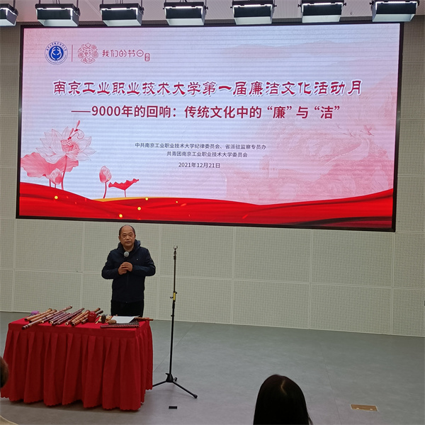 本次讲座是学校第一届廉洁文化活动月的系列活动之一,该系列活动紧密结合党史学习教育与庆祝建党100周年系列庆祝活动,充分挖掘本校廉洁文化资源,充分发挥廉洁文化以文化人、成风化俗的作用。廉洁文化活动月自11月份启动以来,组织开展了一些富有特色、具有教育意义的廉政文化活动。其中,廉洁书画作品展得到了全校师生的广泛相应,作品数量之多、规模之大,艺术水平之高得到兄弟高校及合作单位的广泛好评。