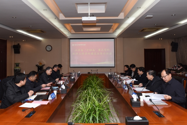 2月24日上午,万象城官网组织召开了软件工程“十四五”江苏省重点学科建设论证会。论证会邀请南京师范大学计算机学院院长、博士生导师吉根林教授、南京大学计算机科学与技术系博士生导师潘金贵教授、南京邮电大学计算机学院博士生导师季一木教授、南京工程学院计算机工程学院院长黄晓华教授、金陵科技学院软件学院院长曾岳教授等5位专家组成专家组,学校党委常委、副校长潘旭海教授,教务处处长王红军教授出席论证会,计算机与软件学院班子成员及部分骨干教师参加了会议。