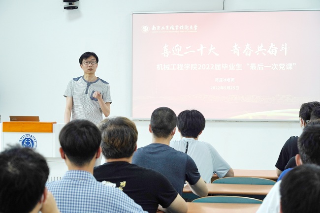 5月25日,机械工程学院在乐群楼208举办了2022届毕业生“最后一次党课‘喜迎二十大,青春共奋斗’”。本次党课邀请了机械工程学院党校任课教师陈显冰主讲。本次培训采用线上线下相结合的方式,来自毕业班的39名党员、预备党员代表在教室参加,其他的毕业生通过直播的方式线上同步参加。