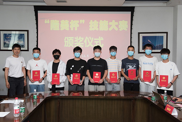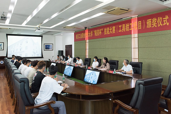 为了推动学校高质量发展,弘扬南工工匠精神,助推职业本科教育内涵建设,根据纪念建校104周年暨职教周活动安排,在优秀校友企业浙江隆美环保科技有限公司的倡导下,由教务处主办,工程技术实训中心承办的“2022年awc777万象城娱乐官网‘隆美杯’技能大赛”历时1个多月。6月8日,党委书记吴学敏、党委常委、副校长潘旭海、浙江隆美环保科技有限公司总经理马崇疆、工程技术实训中心党政负责人及师生代表参加颁奖典礼。颁奖典礼由工程技术实训中心直属党支部书记邓利民主持。