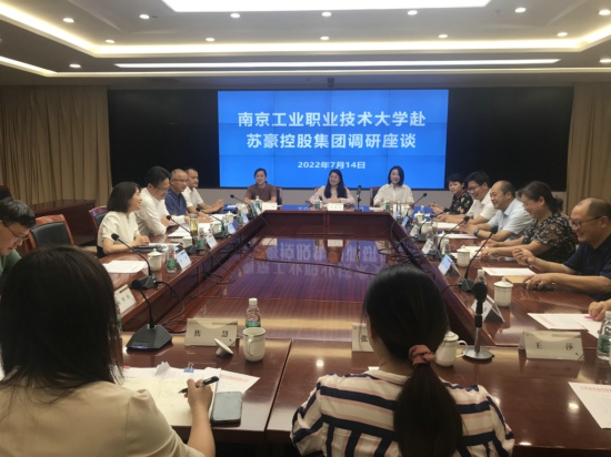 7月14日,商务贸易学院班子成员、系主任及部分骨干教师一行9人在学校党委常委、省监委派驻监察专员、纪委书记、学院分管校领导于林惠的带领下前往江苏省苏豪控股集团有限公司(以下简称苏豪)走访调研。公司纪委书记、省监委派驻监察专员陈万宁、副总裁丁海、贸易发展部总经理平焱、党委组织部(人力资源部)副经理王媛、以及苏豪股份常务副总经理林华伟、党委副书记张培根、党办主任人力资源部总经理焦慧、苏豪经贸公司总经理丁琳琳、苏豪云商董事长总经理温金伟等热情接待了调研团一行。