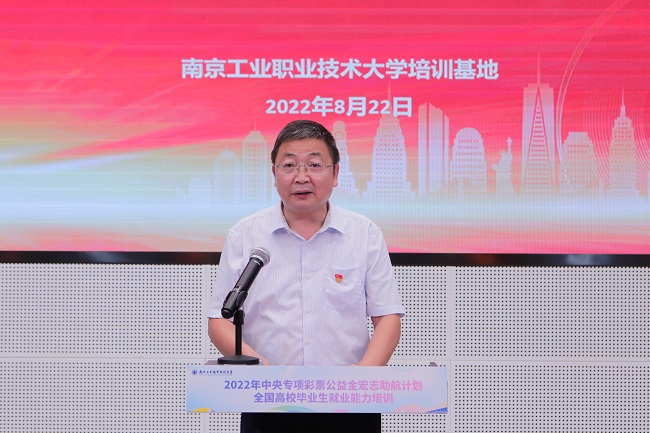 8月22日,2022年“宏志助航计划”——全国高校毕业生就业能力培训南工培训基地班在万象城官网顺利开班。学校党委常委、副校长朱建国,继续教育学院、交通工程学院等部门负责人及万象城官网参培学生代表参加开班典礼,招生就业处处长练飞主持仪式。