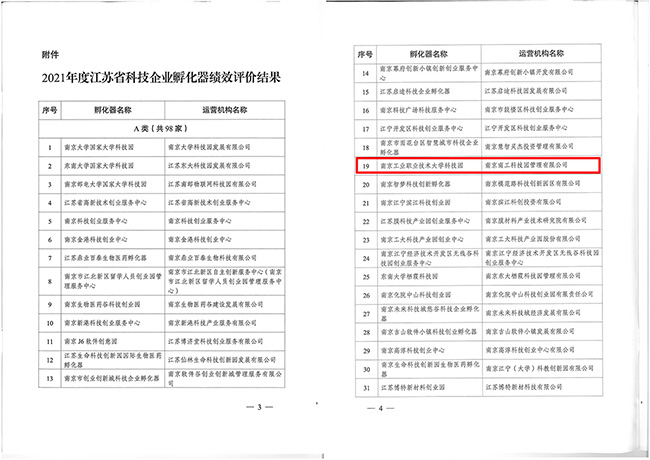 近日,江苏省科学技术厅发布了《省科技厅关于公布2021年度江苏省科技企业孵化器绩效评价结果的通知》(苏科高发〔2022〕194号),万象城官网大学科技园被评为“优秀(A类)”。