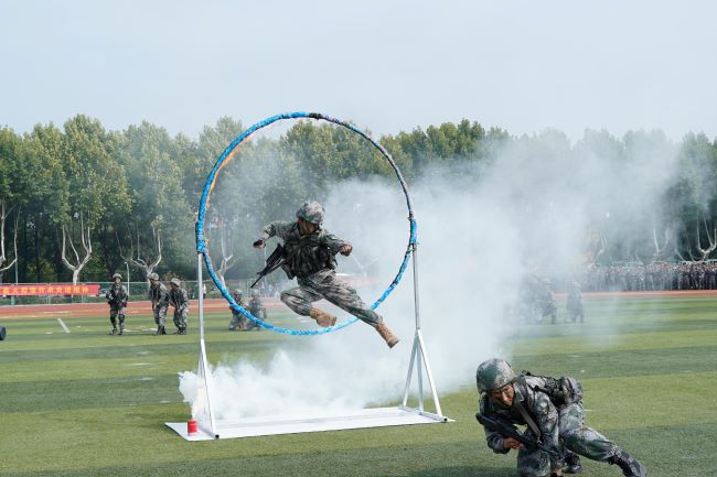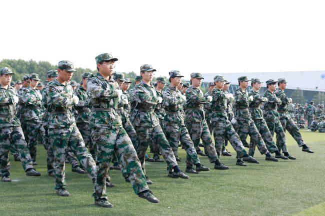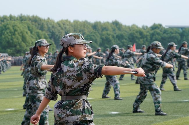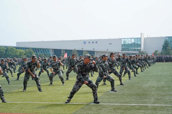 2022级全体参训学生在阅兵指挥官的指挥下,昂首阔步,依次通过主席台,接受检阅,在分列式过后,依次进行了军体拳、匕首操、以及格斗表演。