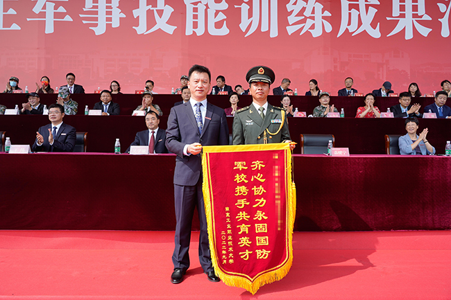 汇报大会上,谢永华校长向承训部队赠送锦旗;王伟副书记宣读军训先进集体和个人表彰决定。校领导们依次为“军训先进个人”“优秀教官”“优秀指导员”“先进连队”“优秀作训参谋”获奖代表颁奖;电气工程学院新能源2211班樊书豪作为参训学生代表发言。