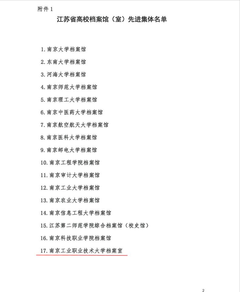 一直以来,在学校党委的领导下,在各有关部门的关心支持下,学校档案工作稳扎稳打,持续保持良好发展态势。一是夯实基础。做好综合档案和重大活动、特色档案的收集、整理和保管工作;二是积极创优,2014年高分通过江苏省档案工作“四星级”等级评审,2015年度荣获“江苏省档案工作先进集体”荣誉称号;三是服务大局,高质量完成学校百年校庆、升格本科、省综合考核、省委巡视等的档案支撑工作;四是转型发展,档案信息化程度显著提升,室藏档案总体数字化率达到50%。
