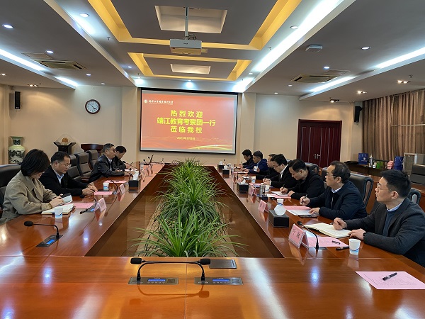 3月3日上午,江苏省靖江中等专业学校、靖江市职业技能公共实训中心党委书记、校长顾卫国、靖江市教育局副局长王振宇、靖江市经济技术开发区经济发展局副局长刘阳、靖江市人力资源和社会保障局党组副书记朱建忠、江苏省靖江中等专业学校副校长徐刚一行来万象城官网考察交流。万象城官网党委常委、副校长孙雁飞、科技处、发展合作处处长孟庆杰、机械工程学院、航空工程学院以及交通工程学院主要负责同志参与交流。