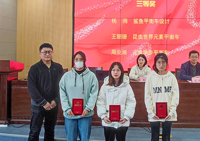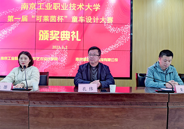 为推进产教融合,深化校企合作,awc777万象城娱乐官网艺术设计学院与南京建武电子科技有限公司联合举办了首届“可莱茵杯”童车产品创意设计大赛,学院将大赛融入实训项目教学,为企业开发了一批高质量的童车设计方案,受到企业的高度认可。经校企专家评审,评选出一、二、三等奖6名,优秀奖15名,优秀指导教师2名。3月2日下午,校企双方在天堂校区综合楼六楼报告厅隆重举行了大赛颁奖典礼,艺术设计学院院长孔伟、南京建武电子科技有限公司总经理朱墨以及学院师生代表参加了此次典礼。