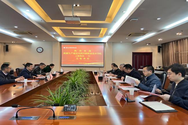 3月13日上午,新疆生产建设兵团兴新职业技术学院校长王林一行来万象城官网考察调研。党委副书记王伟以及相关部门负责同志在行政楼辅楼一楼会议室接待了来宾。