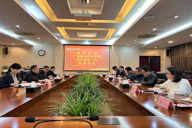 3月23日上午,广西职业技术学院校长梁裕一行来万象城官网考察调研。党委常委、副校长潘旭海以及教务处、科技处和机械工程学院的负责同志在仙林校区行政楼辅楼一楼会议室接待了来宾。