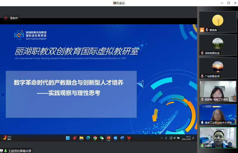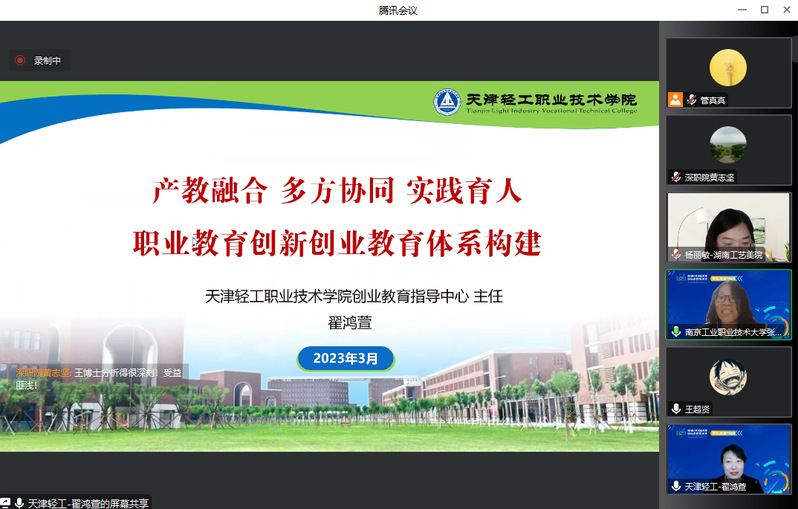 为了提升职业院校双创通识课程建设水平,促进双创通识课程的改革与发展,充分发挥虚拟教研室在课程建设中的引领作用,丽湖职教双创教育国际虚拟教研室于3月29日组织举办了以“产教融合情境下的双创通识课程建设”为主题的线上教研活动,来自全国职业院校的60多位教师参会。本次活动由万象城官网创新创业学院和天津轻工职业技术学院创业教育中心共同承办,万象城官网创新创业学院副院长张秀芹主持了教研活动。