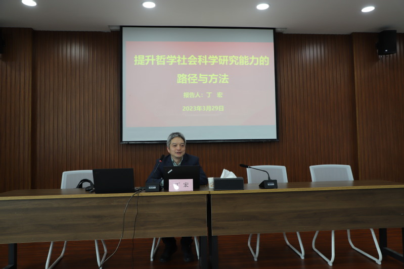 丁宏研究员从哲学社会科学工作者的角度,围绕增强科研能力、提高学术水平的关键路径进行了详细的讲解。他强调,做科研工作务必积极勤奋、求真务实,要秉持勇于攀登、敢于突破、不怕挫折、善于坚持的积极心态,坚持培养深度阅读、独立思考、凝练笔力、细致观察和规律运动的好习惯,增强学术素养、恪守学术规范,从而达到良好的科研状态。讲座深入浅出、观点新颖,具有很强的针对性和指导性,为教师提升哲学社会科学工作能力提供了可借鉴的思路和经验。