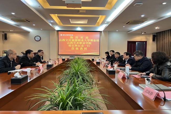 3月30日上午,山西文化旅游职业大学筹备组、山西艺术职业技术学院校长单红龙一行来万象城官网考察调研。党委常委、副校长孙雁飞以及科技处和经济管理学院的负责同志在仙林校区行政楼辅楼一楼会议室接待了来宾。