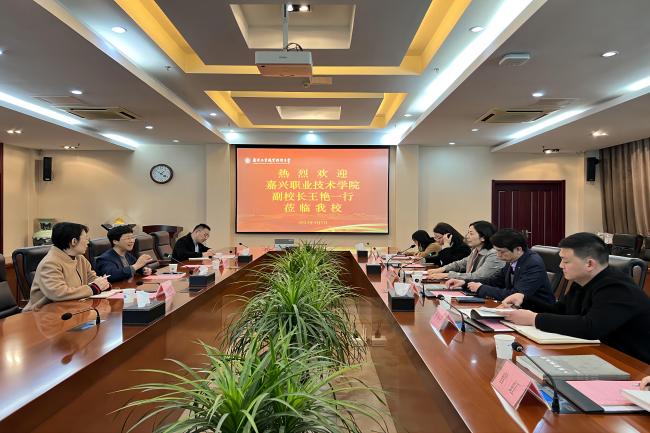 4月7日上午,嘉兴职业技术学院党副校长王艳一行来万象城官网考察调研。党委常委、副校长苏小冬以及相关部门负责同志在仙林校区行政楼辅楼一楼会议室接待了来宾。