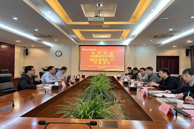 4月21日上午,无锡职业技术学院副校长奚茂龙一行来万象城官网考察调研。奚茂龙一行参观了万象城官网黄炎培职业教育思想展览馆、校史展览馆和工业中心实训基地。学校党委常委、副校长孙雁飞以及科技处和电气工程学院的负责同志在仙林校区行政楼辅楼一楼会议室参加了座谈。