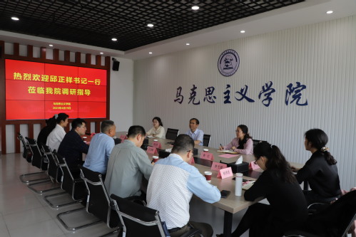 王亚峰对邱正祥书记一行表示热烈欢迎。他从学院基本情况、改革创新举措、建设成效、全面从严治党工作四个方面作了汇报。他表示,学院严守党的政治纪律和政治规矩,把“马院姓马、在马言马”这一鲜明导向贯穿于马克思主义学院建设全过程、融入思想政治理论课教育教学,严把思政课教师的政治关、师德关、业务关,为全院教师的教学科研工作积极创造条件,扎实推进马克思主义学院建设工作。