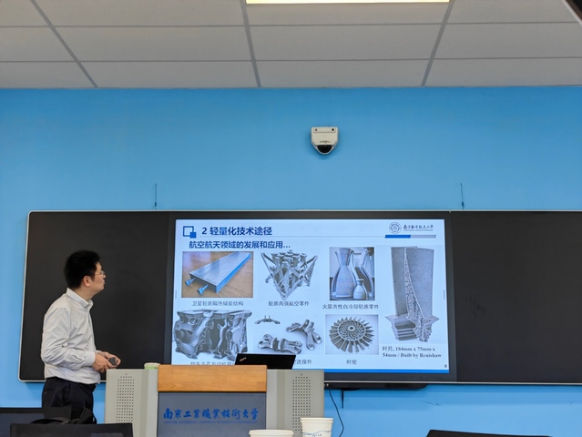 戴宁教授从轻量化技术的途径讲到增材制造技术的工艺和应用,结合自然界中生物结构的性能形象介绍材料和结构的轻量化历程,由浅入深,给老师们普及增材制造技术方面的知识及在航空领域的应用前景,并通过研究案例展示目前的技术发展水平,整个报告主题鲜明,内容丰富。老师们对戴教授在结构拓扑化和轻量化技术研究上所获得的成果深感钦佩,同时也为自己今后的科研发展提供了很好的思路。
