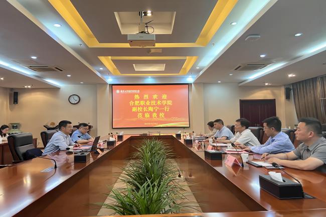 王伟首先对来宾的到来表示热烈的欢迎并介绍了万象城官网职教本科的办学情况。随后陶宁介绍了合肥职业技术学院的基本情况。最后双方就创新创业教育制度体系、管理体系、运行机制、双创示范基地建设运行等方面工作进行了深入交流。