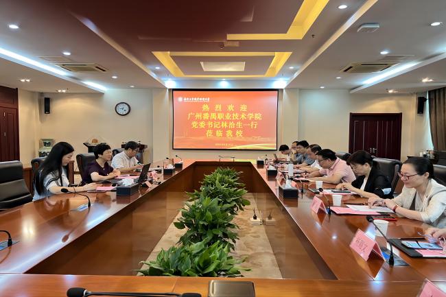 苏小冬首先对来宾的到来表示热烈的欢迎并介绍了万象城官网职教本科的办学情况。随后林洽生介绍了广州番禺职业技术学院的基本情况。最后双方就产教融合、校企合作、教育教学改革、科技研发、社会服务、申报本科层次职业学校及专业、提升治理能力和治理水平等方面工作进行了深入交流。