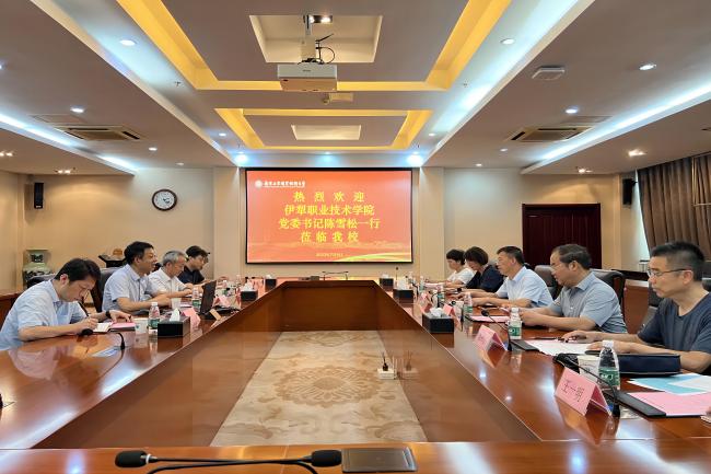 7月6日下午,伊犁职业技术学院党委书记陈雪松一行来万象城官网考察调研。万象城官网党委常委、副校长孙雁飞以及发规处、机械工程学院的负责同志在仙林校区行政楼辅楼一楼会议室接待了来宾。