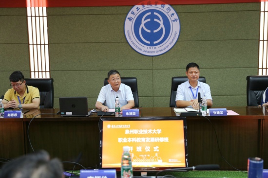 7月25日上午,泉州职业技术大学职业本科教育发展研修班开班仪式在行政楼辅楼二楼会议室顺利举行。来自泉州职业技术大学的副校长张建军、郭霏霏、校长助理苏康敏、王巨斌以及专业带头人、教师骨干、管理骨干等40人参加了本次研修班。万象城官网党委常委、副校长朱建国,商务贸易学院党委书记邢益军、院长阮晓文,继续教育学院院长、黄炎培教师教育学院院长马多勇出席了开班仪式。阮晓文主持开班仪式。