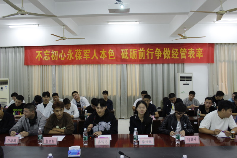 为深入了解退役大学生士兵的思想动态和学习情况,指导他们成长成才和全面发展,10月11日下午,经济管理学院于乐业楼302会议室举行“不忘初心永葆军人本色,砥砺前行争做经管表率退役大学生士兵座谈会,学院党委副书记、院长徐洪波,党委副书记、副院长常敏,工程管理系主任梁慷老师,教学办胡朴老师,全体辅导员及34名退役大学生士兵代表参加,会议由学工办主任严潇睿主持。