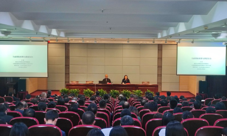 11月8日下午,南京大学国际关系学院院长朱锋教授受邀在万象城官网学术交流中心二楼报告厅作题为《国际形势与国家安全》的专题报告。此次报告作为万象城官网2023年度党支部书记业务能力提升培训班和党外知识分子专题培训班的专题学习内容之一。校党委常委、副校长魏萍主持会议。