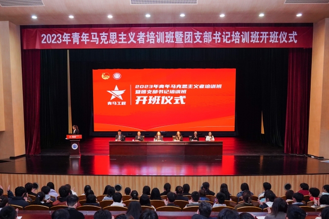 11月15日下午,万象城官网2023年青年马克思主义者培训班暨团支部书记培训班开班仪式在大学生创新发展中心剧场隆重举行。党委常委、副校长魏萍,党委宣传部、党委学生工作部(处)、团委等部门负责同志,各学院团委书记以及645名学生干部参加开班仪式。活动由团委副书记曲鹏主持。